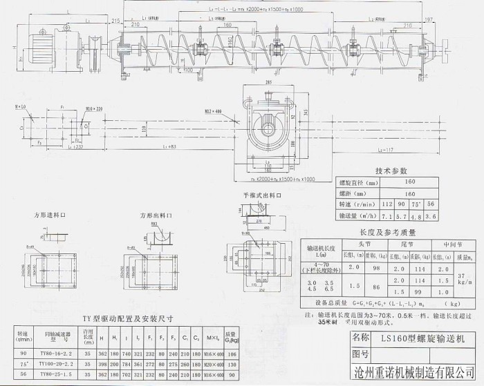 LS160型螺旋输送机图纸